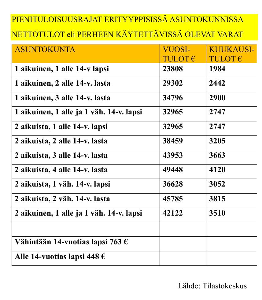 Pienituloisuusrajat