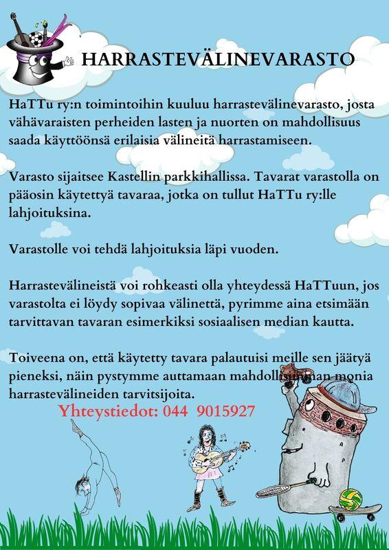 Harrastevälinevaraston hoitaa mm. Johanna Luukkonen.